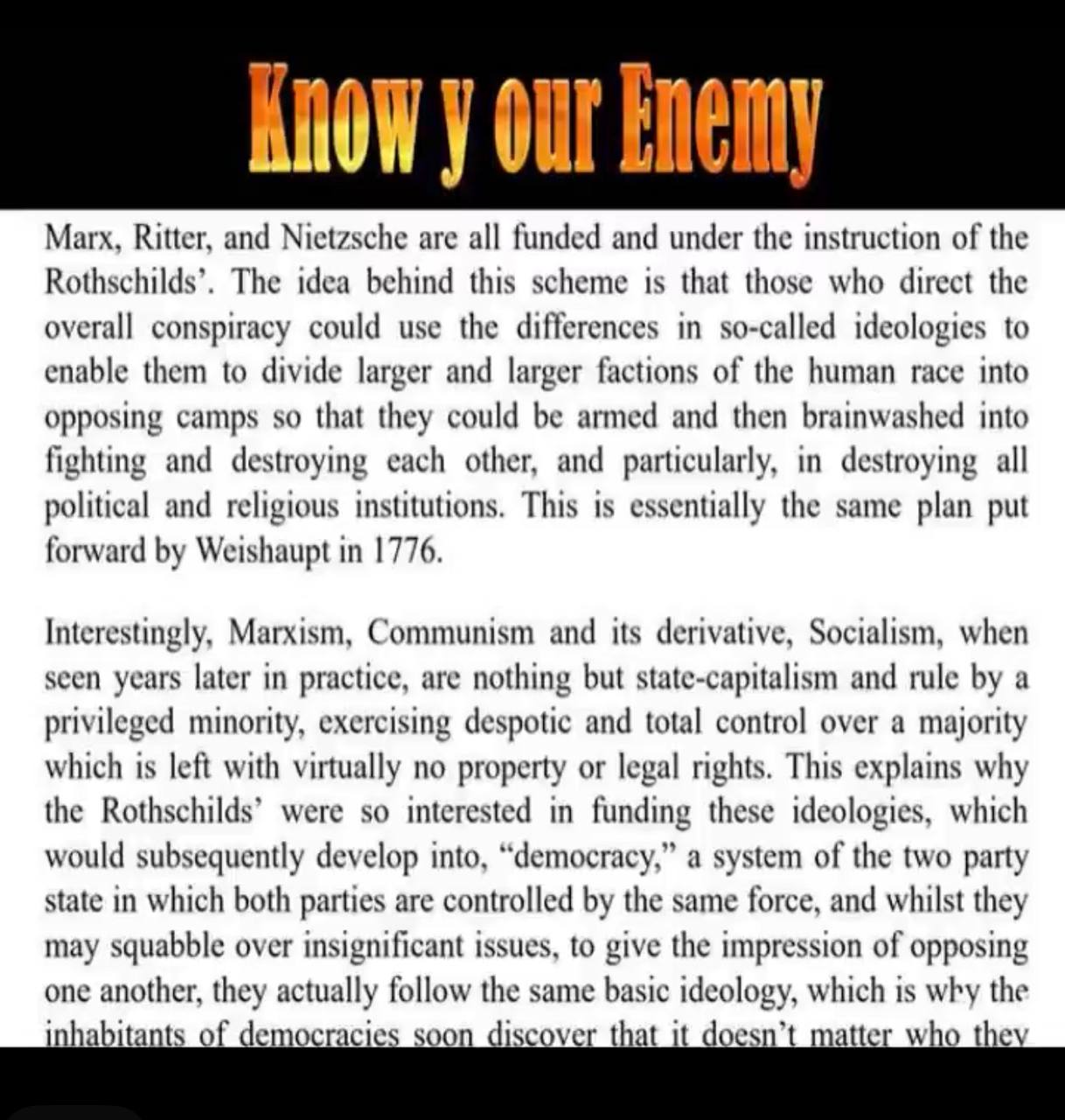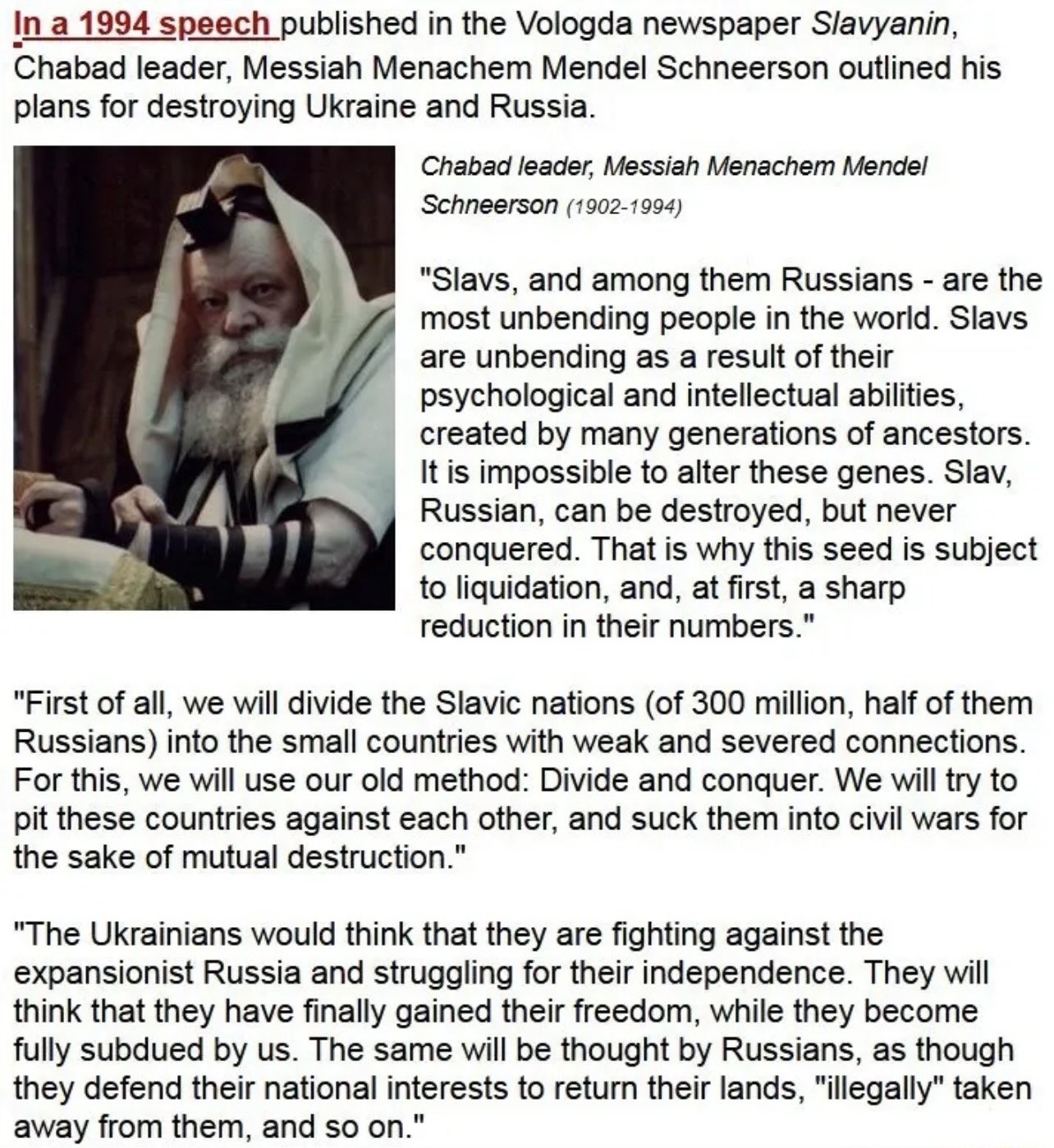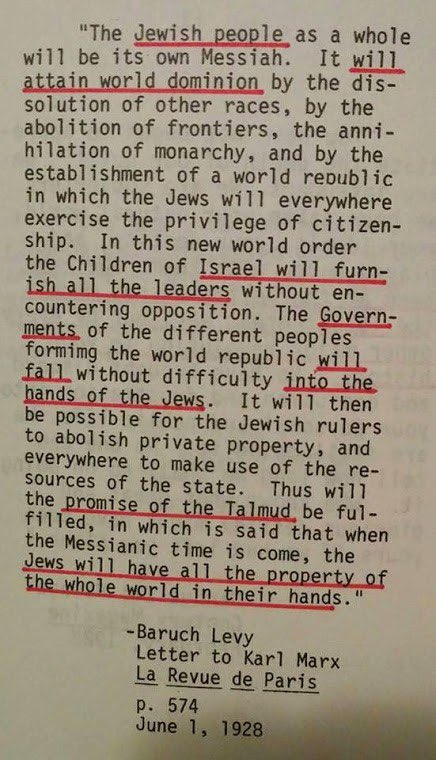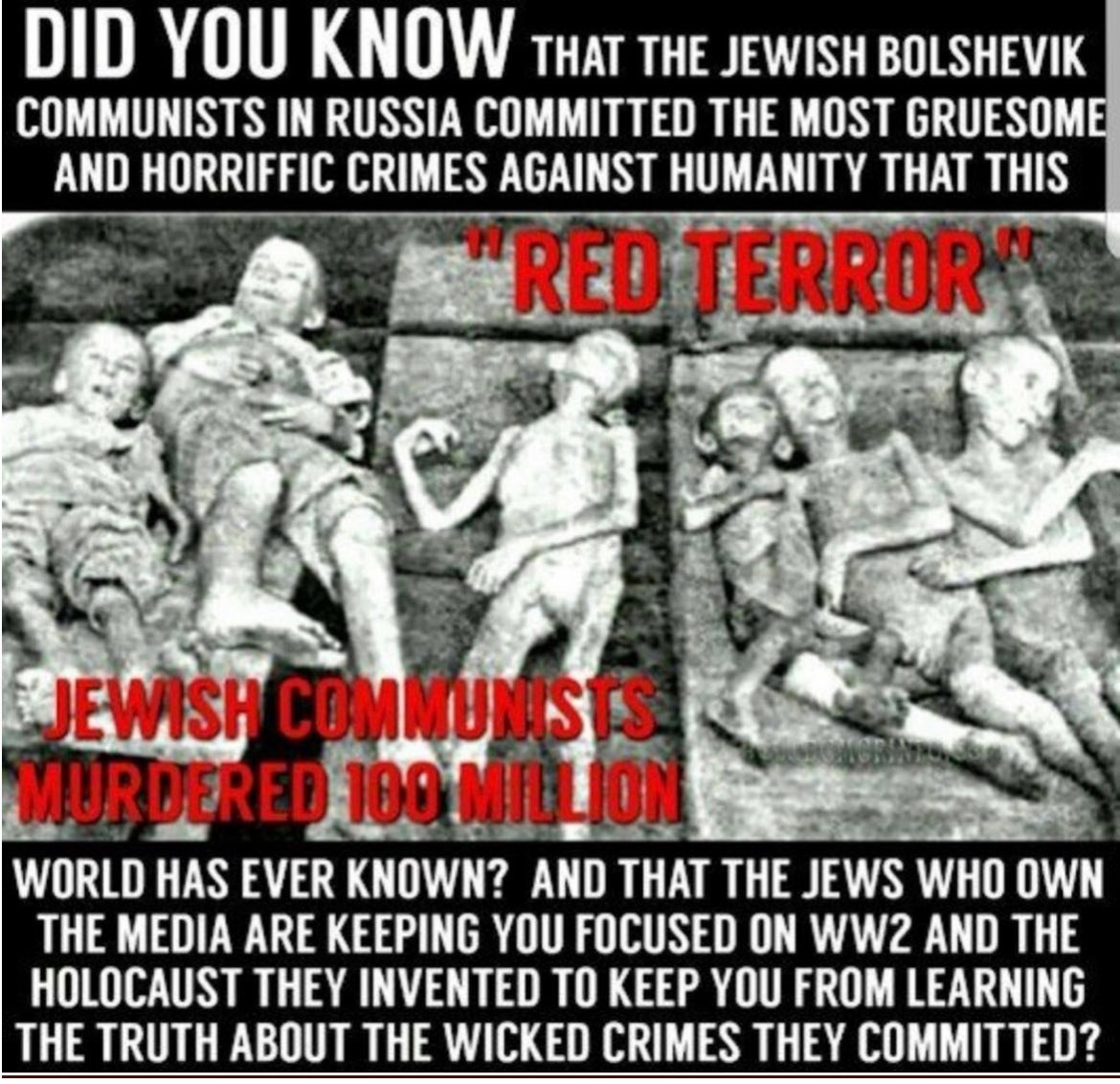 Hvis Kristne i Vesten fandt ud af at jødiske bolshevikker systematisk havde myrdet 60 millioner ortodokse Kristne, herunder blandt andet ved at gasse dem, så ville befolkningen kræve at jøderne måske ikke kun i USSR men også de jødiske bankfolk og politikere, der stod bag at få startet WWI + WWII, kom for retten.